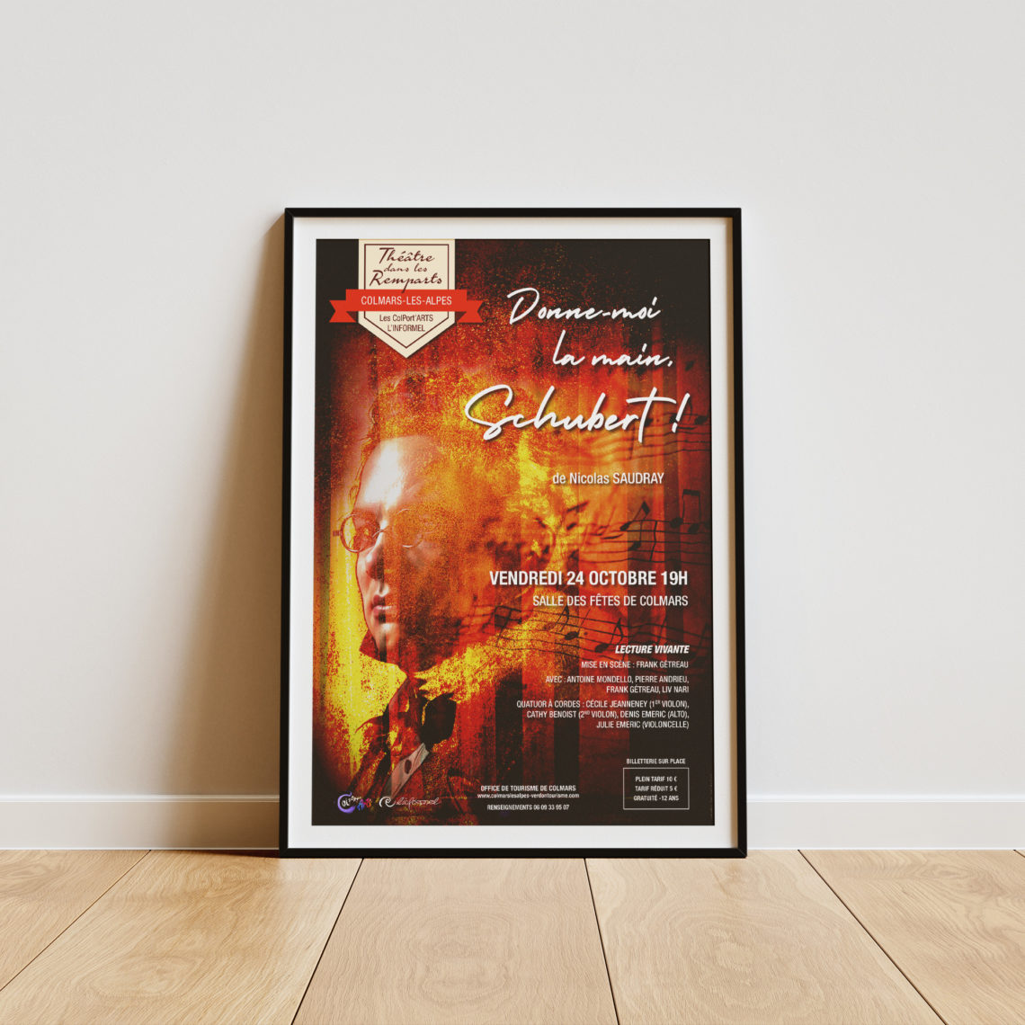AFFICHE-FLYER Spectacle Schubert Création de l’affiche pour le spectacle « Donne-moi la main, Schubert ! » organisé par la compagnie Colport’Arts. Titre : Affiche « Donne-moi la main, Schubert ! » Années : 2025 Détail : Création du visuel de l’affiche du spectacle « Donne-moi la main, Schubert ! » Travaux réalisés : Recherche graphique | Création | Maquettage Précédent L'Obs by Night #9 Vous aimerez aussi Marché Bio de Beauvezer 5 novembre 2020 Théâtre dans les Remparts 10 juillet 2019 Journée Pressage 6 septembre 2019